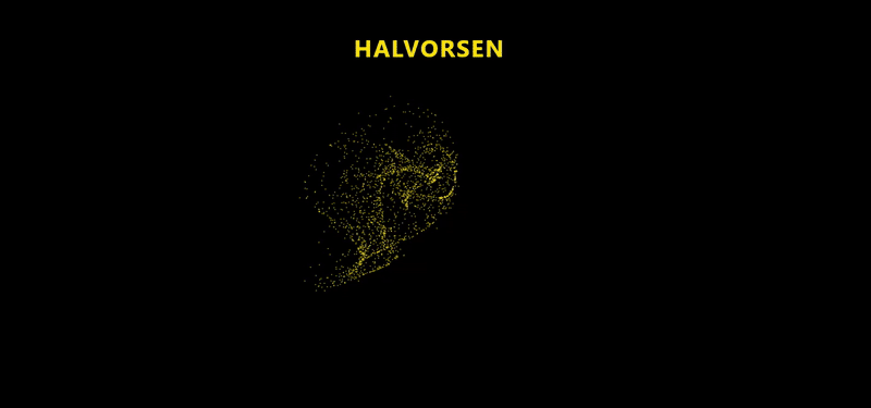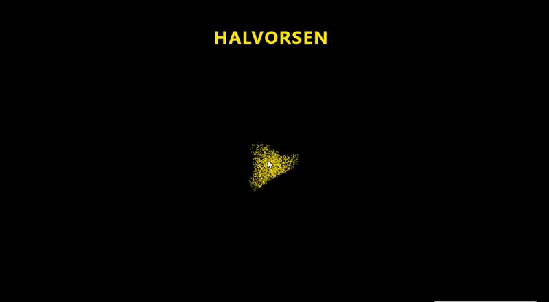 举个例子, Halvorsen Attractor 的视觉效果是粒子在三个对称的圆环之间穿梭,像一个纠缠在一起的三叶结,对应的公式逻辑大致为: