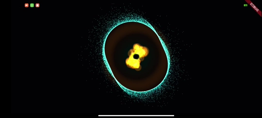 最后是让 30,000 个粒子配合 BlendMode.plus,在重叠处产生了高亮的能量感,模拟了星系的高密度区域,主要有: