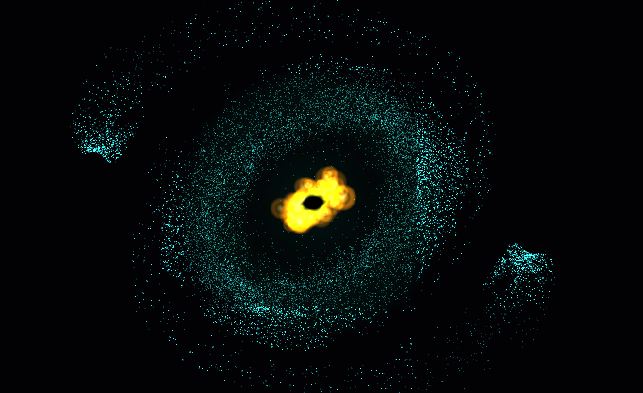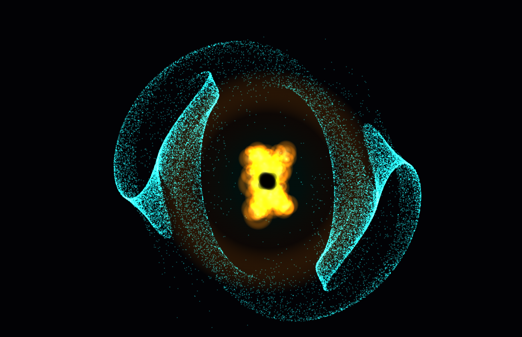 另外还需要吸积盘模拟 (Accretion),让粒子看起来围绕“黑洞”中心运动: