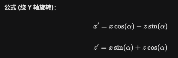 double x1 = x * cos(rotationY) - z * sin(rotationY);