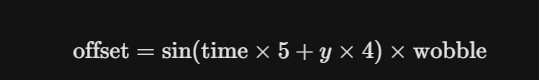 sin(time...)引入了周期性的波浪+ y * 4让波浪在球体上下不同高度处于不同相位(产生像蛇一样的扭动感)- 通过
