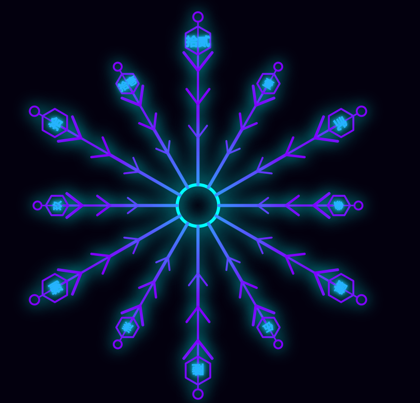 - 50% - 75%: 画雪花状组件(六边形数字)