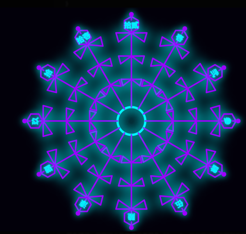 同时阵法不是一个正圆,而是像雪花一样长短交替的: