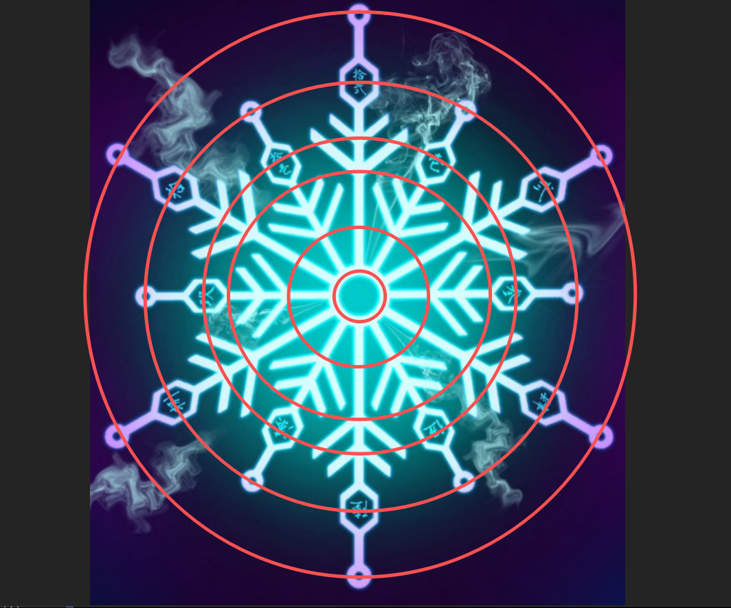 在通过提示词和构图坐标理解后,AI 是真的开始理解图片了,至少它是真的能通过红圈明白自己需要做的事情,这也体现在代码的极坐标实现上,然后我就得到了下方的效果:
