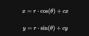 center.dx + radius * math.cos(angle), // x = r * cos(θ)