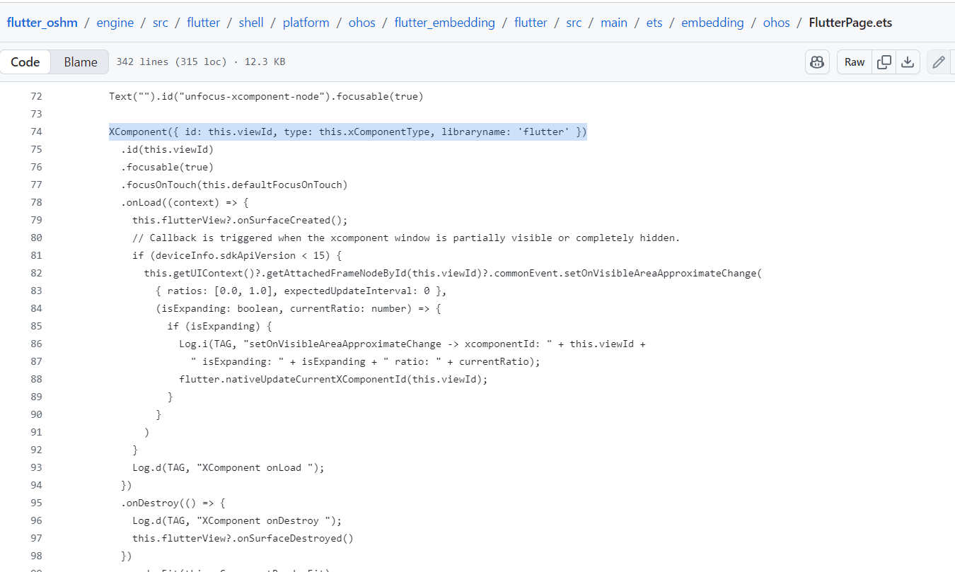 3、渲染上, FlutterPage 是鸿蒙特有的渲染容器, 用 XComponent 作为 Flutter 渲染的承载 ,FlutterPage.ets 中的 ArkUI XComponent 指定了 libraryname: 'flutter' ,所以会加载 libflutter.so 并触发 library_loader.cpp 中的 NAPI 注册 :