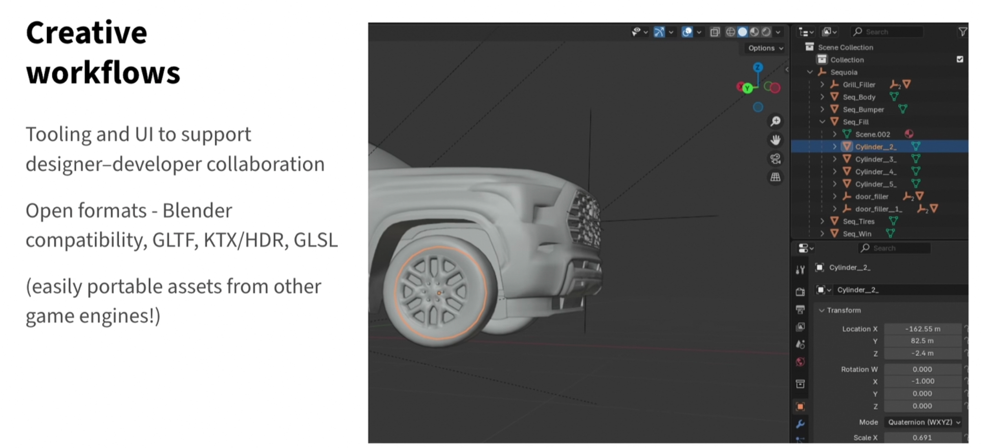 物理准确光照、后处理效果、可访问性(accessibility)、着色器管道(shader pipeline)、Blender 中定义点击区触发事件等