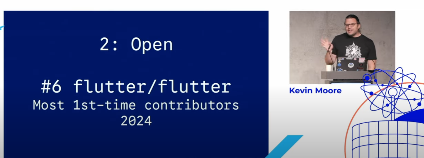 这个主题是由 Kevin Moore 在 Fluttercon EU 2025 分享, Kevin Moore 是 Google Flutter 和 Dart 团队的产品经理,而本次主题也是向大家展示了 Flutter 未来的规划,比如开放性、可扩展性、强大的生态系统和持续演进等。