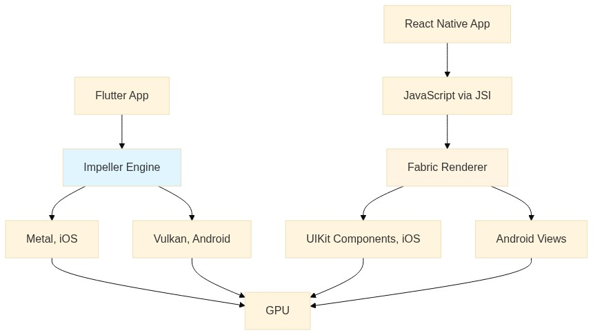 | 渲染 | Impeller(Metal/Vulkan),直接访问GPU。像素级精准一致性,不受操作系统界面变化的影响。 | 通过 Fabric 实现原生组件,外观与原生应用完全一致,但可能会因 OEM 厂商的行为变更而有所调整。 |